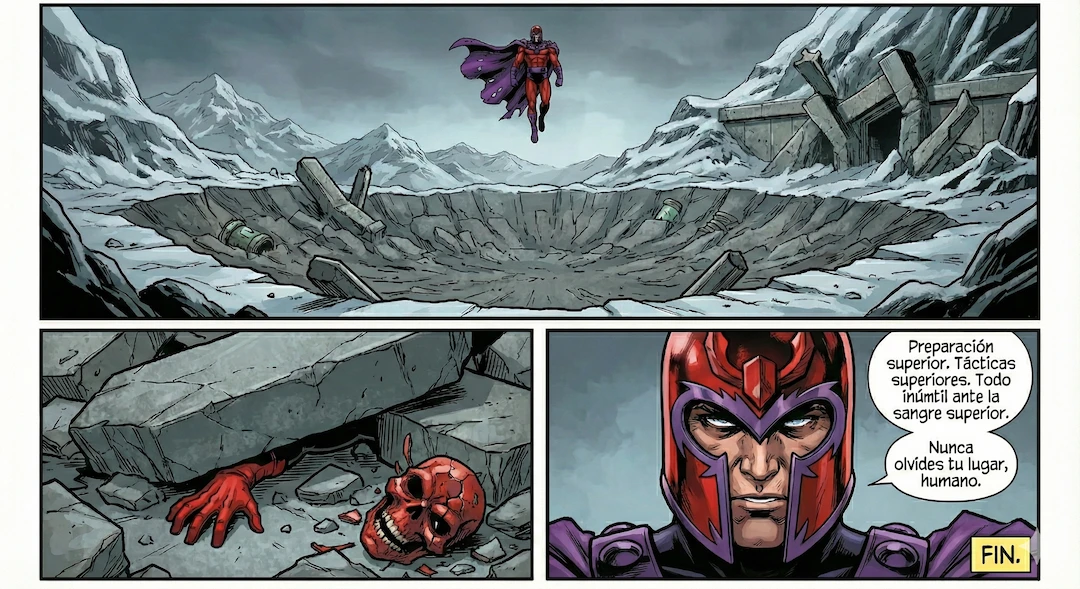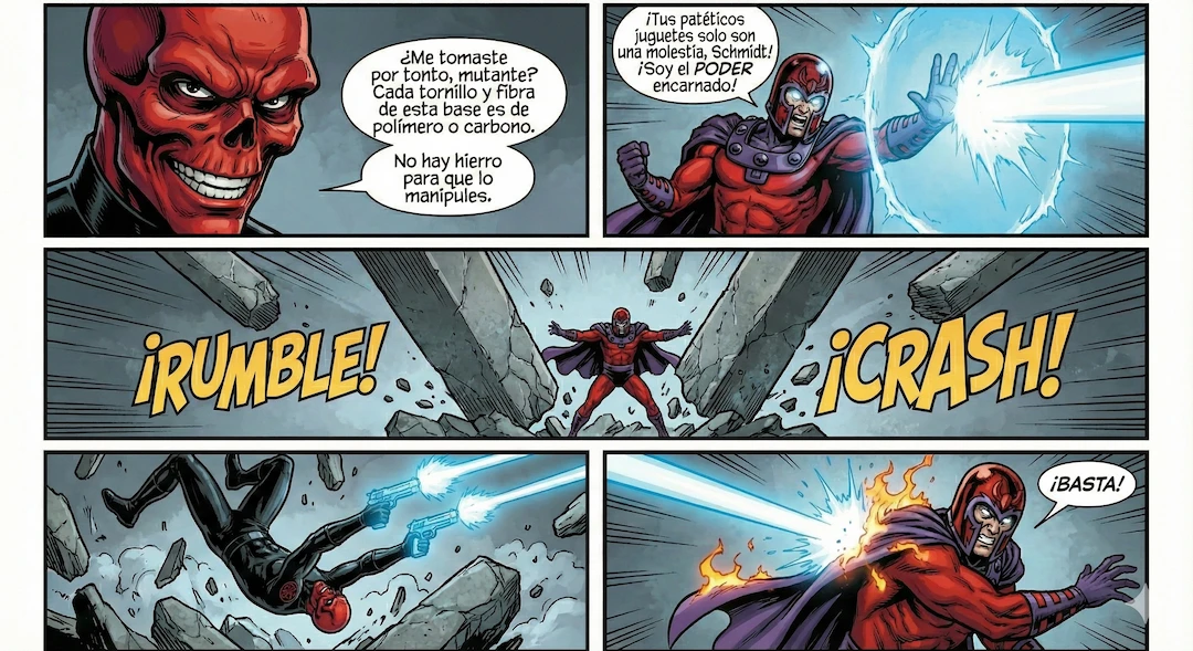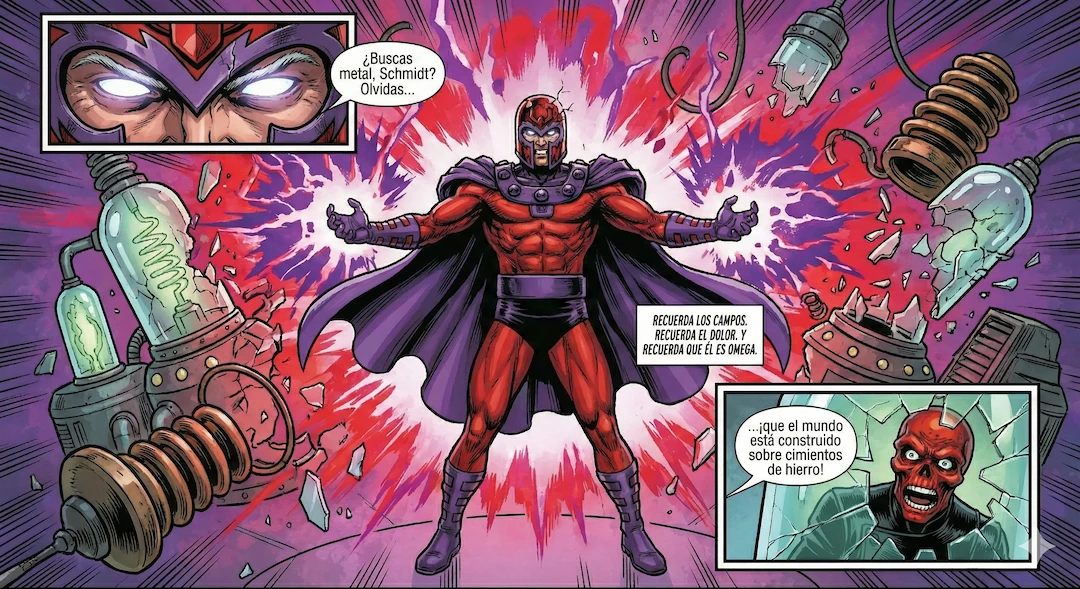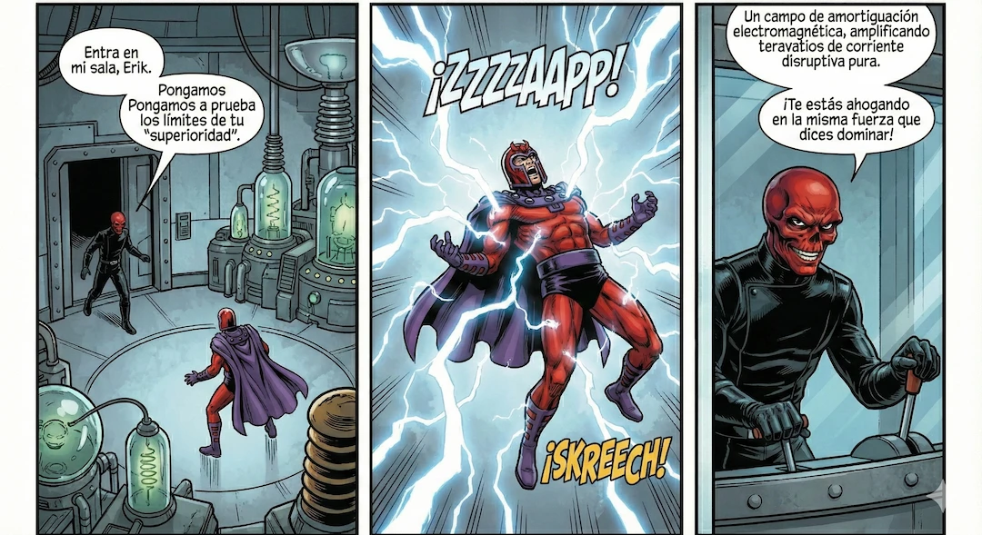 Un enfrentamiento entre Cráneo Rojo (Johann Schmidt) y Magneto (Erik Lehnsherr) es una batalla entre la estrategia suprema y la preparación tecnológica contra el poder puro de nivel Omega sobre una fuerza fundamental del universo.